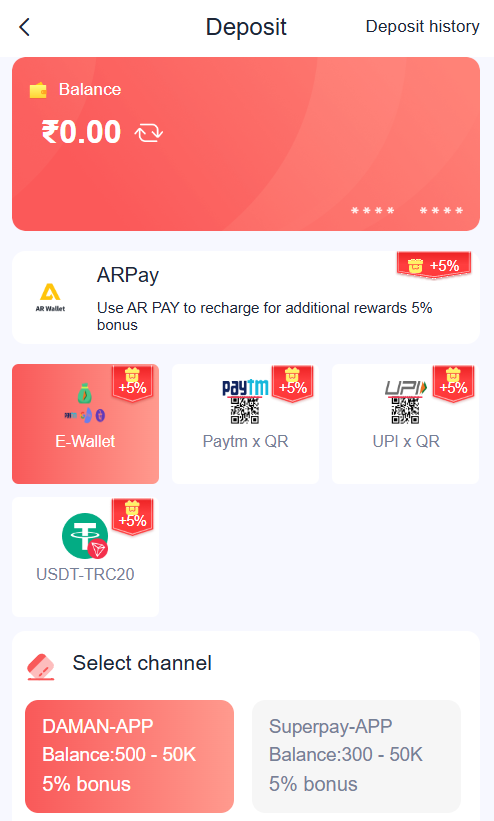 To begin playing and winning real money, you need to fund your Daman Games account. The platform provides multiple secure deposit options, such as: