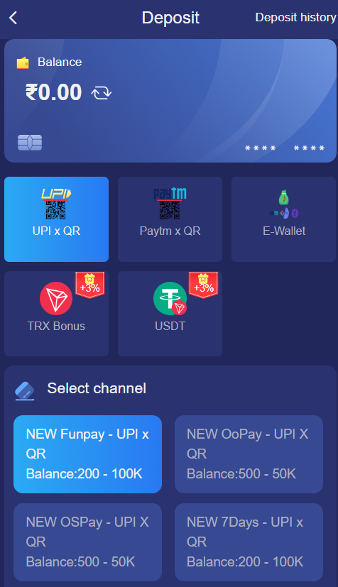 To play and win on Tiranga Games, you need to add funds to your account. The platform offers multiple payment methods, including: